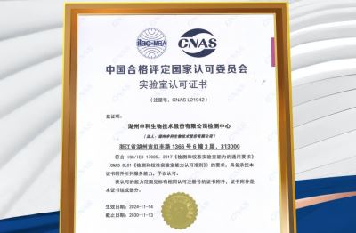 2024年11月,湖州申科生物技術(shù)股份有限公司檢測中心(簡稱“檢測中心”)獲得由中國合格評定國家認可委員會(簡稱“CNAS”)頒發(fā)的實驗室認可證書。